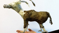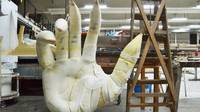 Stefanie Oberhoff: Das ist auch interessant sich vorzustellen, dass die, die die Figur bewegen von ihrer Position nie sehen können, wie es eigentlich genau aussieht oder was da eigentlich passiert. Die müssen sich auf so ein Gefüge verlassen, dass sie wissen, wenn ich das mache, dann wird das schon die Haltung sein, von der geredet ist oder die ich jetzt spüre. Für mich ist auch noch eine große Herausforderung, es geht ja nicht nur um die Beweglichkeit, sondern dass Ganze soll auch noch aussehen wie ein Stück Natur, wie eine Landschaft. Gerade ist der Malsaal am Experimentieren wie man das Ganze noch bepflanzt, begrünt.