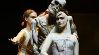 Was diese Inszenierung besonders macht: „L’Orfeo“ ist eine Gemeinschaftsproduktion der Sparten Oper, Tanz und Puppentheater mit den gesamten Ensembles. Giuseppe Spota, Direktor der MiR Dance Company, hat das Gesamtereignis aus Gesang, Tanz und Puppenspiel umgesetzt.