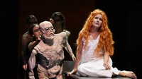 „Dargestellt wird der Gehörnte in diesem Fall von einer Puppe und bis zu drei Spielern, die sie zu einem mitunter gruseligen Leben verhelfen. Die schrillen Kostüme und Puppen von Atif Mohammed Nor Hussein passen zum bunt-schrägen Bühnenbild von Lisette Schürer […] Mit Astrid Griesbach hat das Musiktheater nicht nur eine der renommiertesten Puppentheater-Regisseurinnen des deutschsprachigen Raumes für die Inszenierung gewinnen können, sondern auch eine Regisseurin, die bei Robert Wilson, der bei der Uraufführung im Jahr 1990 im Thalia-Theater in Hamburg Regie führte, hospitiert hat […] Die Puppenspieler Gloria Iberl-Thieme, Daniel Jeroma, Marharyta Pshenitsyna, Merten Schroedter und Seth Tietze hauchen den Puppen wahrhaftig Leben ein und sorgen für das schräge Gesamtkunstwerk.“