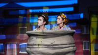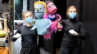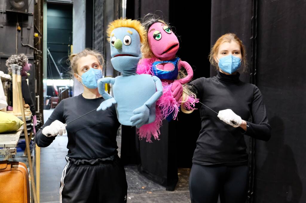 „Wir waren zwischendurch in einer Phase, wo das Theater in der Luft hing, weil es noch keine Entscheidungen von der politischen Ebene gab, das war dann immer so ein bisschen von Tag zu Tag.“ Und dann geht es im Februar 2021 von einem Tag auf den nächsten weiter. In wenigen Wochen soll "Avenue Q" Premiere feiern und wieder gibt es viel zu tun. Für musikalische Einstudierung und szenische Proben bleibt nur wenig Zeit. Das ist für die Puppenspieler*innen wie ein Sprung ins kalte Wasser, Seth Tietze: „Wir hatten zwar Gesangsunterricht im Studium, aber das war überhaupt nicht der Fokus und in dem Arbeitsfeld Musiktheater ist das schon so wie ein Mal vom Zehn-Meter-Turm springen.“