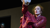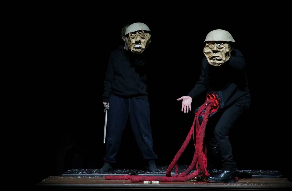 „In der spartenübergreifenden Produktion von Musiktheater und Puppentheater geben, spielen, bewegen die Mitglieder des Puppenspielstudios nicht nur die beiden Kinder, sondern verkörpern auch wenig später in einem der aufregendsten Momente der Inszenierung den selbstherrlichen Papst ,Bonifazius VIIIʻ als Totengräber des christlichen Glaubens.“