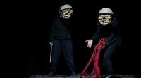 Maskentheater ist ein Element des Puppentheaters. Der Körper des Spielenden dahinter bleibt sichtbar, aber sein Kopf verschwindet hinter dieser Maske. Die Maske wird zum Gesicht und zwingt den Körper zu großen, figurenhaften und künstlichen Bewegungen. Es entsteht ein spannendes Zusammenspiel von Körper und Material. Auch in „Amphitryon“ arbeitet Regisseur Nis Søgaard mit Masken, genauer gesagt mit Halbmasken. Hier bleibt der Mund frei, das eigene Gesicht verschmilzt quasi mit der Maske. Maskentheater erzeugt eine abstrakte Überhöhung und Künstlichkeit der Figuren. Sie ermöglicht, eine Komik in der Ernsthaftigkeit und gleichzeitig auch eine Tragik in der Rolle zu zeigen.