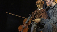 Annette Dabs: Das Schöne ist, dass die Puppen zum Teil einfach nur da sind. Es gibt Passagen, wo wir mit den etwas größeren Puppen arbeiten, aber auch die kleinen Puppen, es wird eigentlich immer das Gleiche sein. Die tauchen auf und die sind da, so wie in einer Landschaft. Tiere sind auch einfach da, die richten sich nicht danach, ob ich jetzt die Stimmung hab oder ob eine Musik langsam ist, laut oder leise. Die sind da und dann sind sie wieder weg oder die gucken auch einfach nur. Dieses nur da sein ohne einen Kommentar zu spielen macht was mit der Musik.